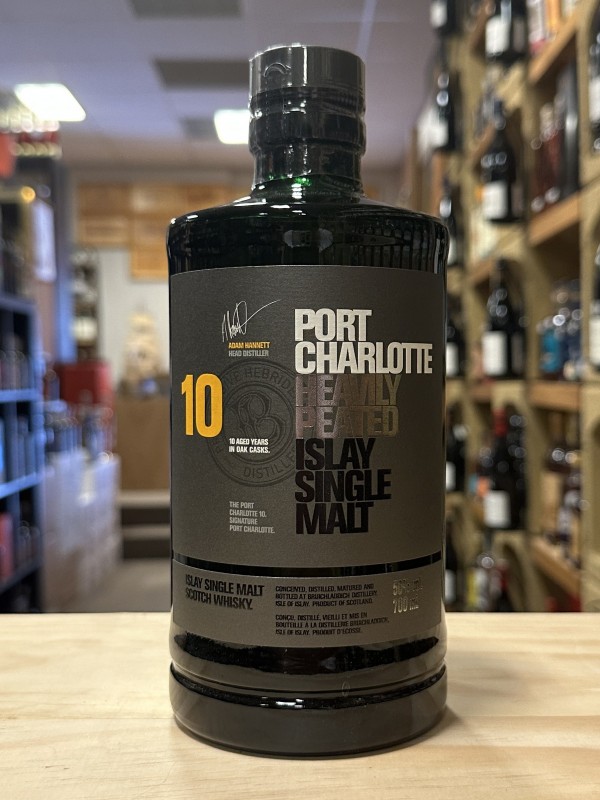Port Charlotte réinvente sa gamme et son packaging en 2018 pour laisser place à ce 10 ans d’âge qui vient remplacer le « Scottish Barley » de la distillerie. Toujours fabriqué à partir de 100% d’orge écossaise du comté d’Inverness et d’eau de source provenant d’Islay, ce single malt ultra tourbé (40 ppm) est vieilli à 75% dans des fûts de whiskey américain de premier remplissage et à 25% en fûts de vin français de second remplissage. Le nouveau packaging de la gamme Port Charlotte en bouteilles de verre de couleur verte est un clin d’œil au design des bouteilles de whiskies tourbés produits par d’autres distilleries d’Islay. Toutefois, la distillerie tient à ce que son single malt soit imaginé, distillé, vieilli et embouteillé à Islay.